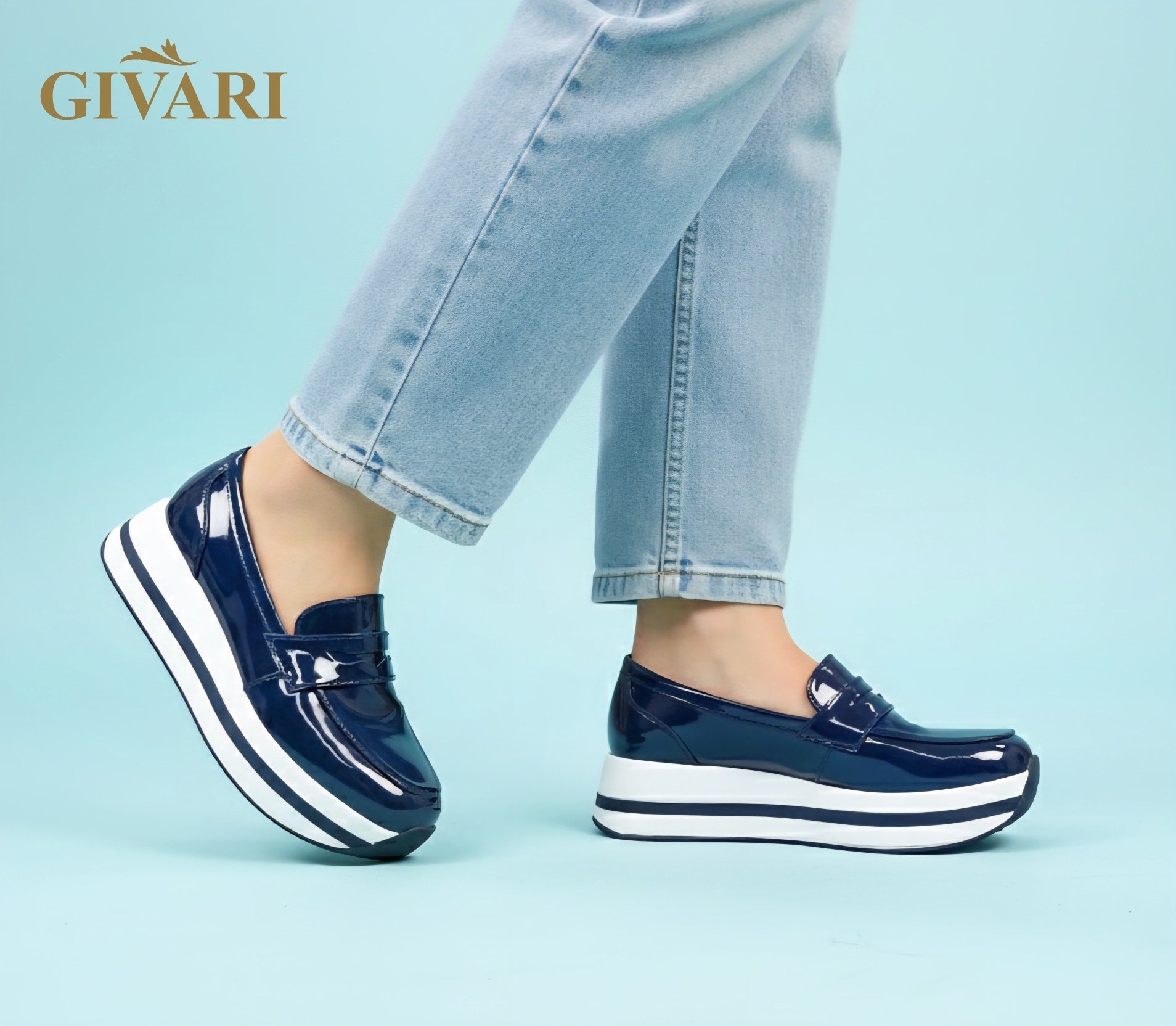 Mocasines de plataforma en charol, cómodos y elegantes para un look moderno y versátil. Perfectos para combinar con cualquier outfit casual o de oficina."